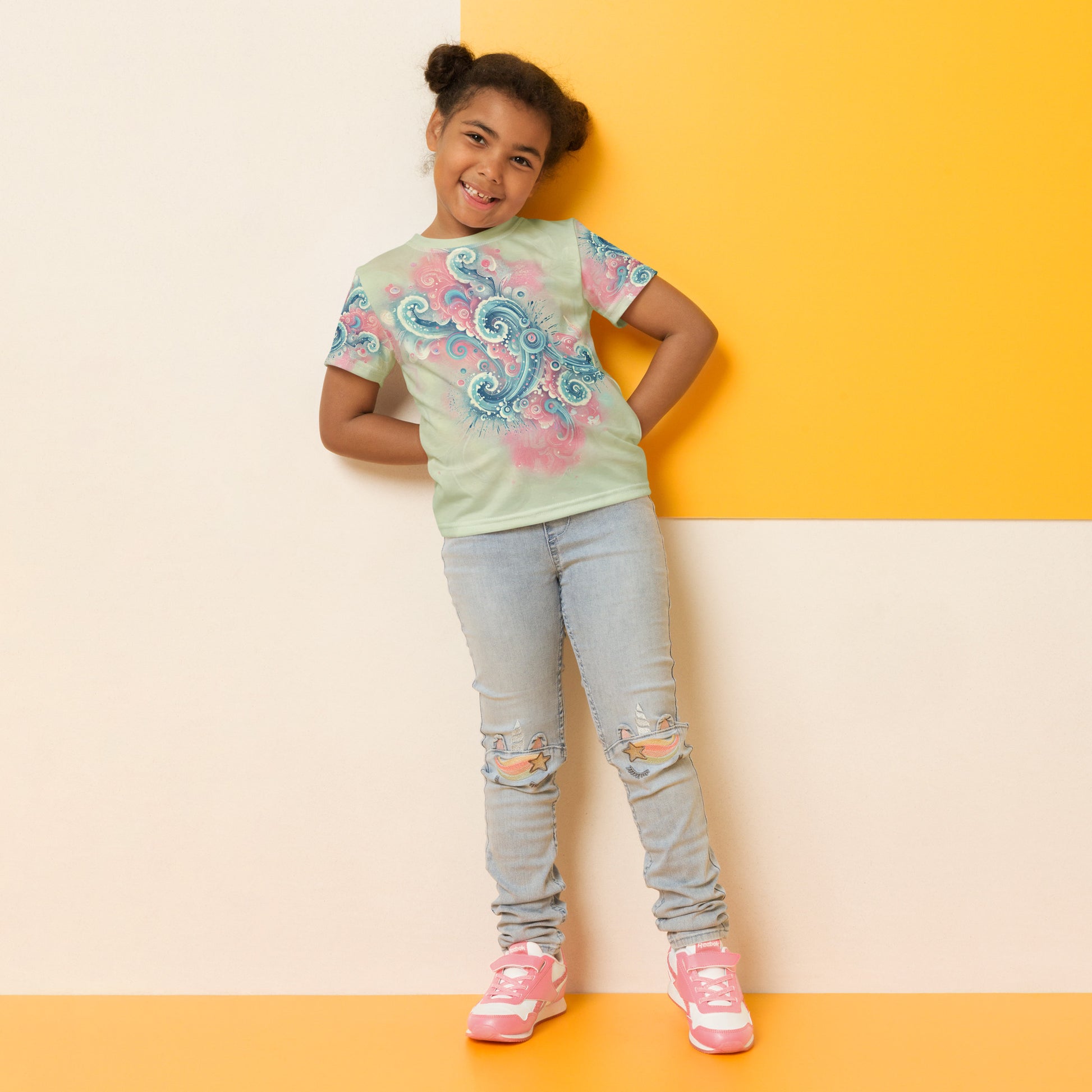 Get a t-shirt for your kids that has it all—colorful design that looks great, and a fit that allows the kiddos to participate in all of their favorite activities and be comfy the whole time. The ultimate kids tee.